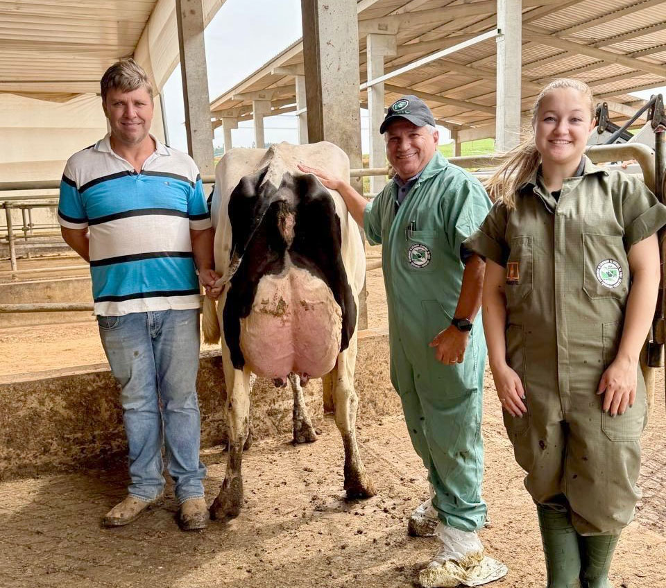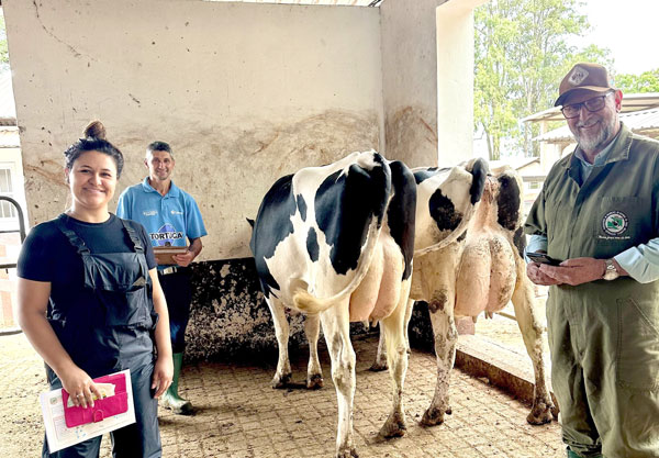 Evelyn Zarpelão, Gilvani (gerente da propriedade) e Pedro Ribas