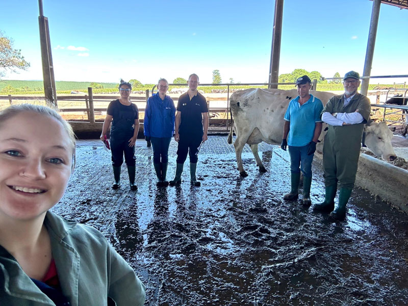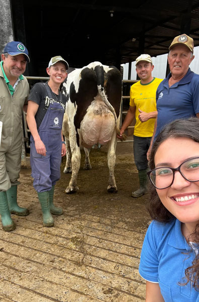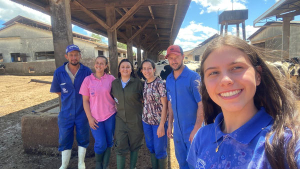 Equipe de manejo da fazenda Ricardo, Regiane, Luana, Cleverson e Kauana com Mylena