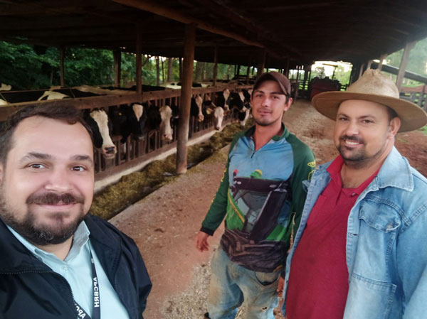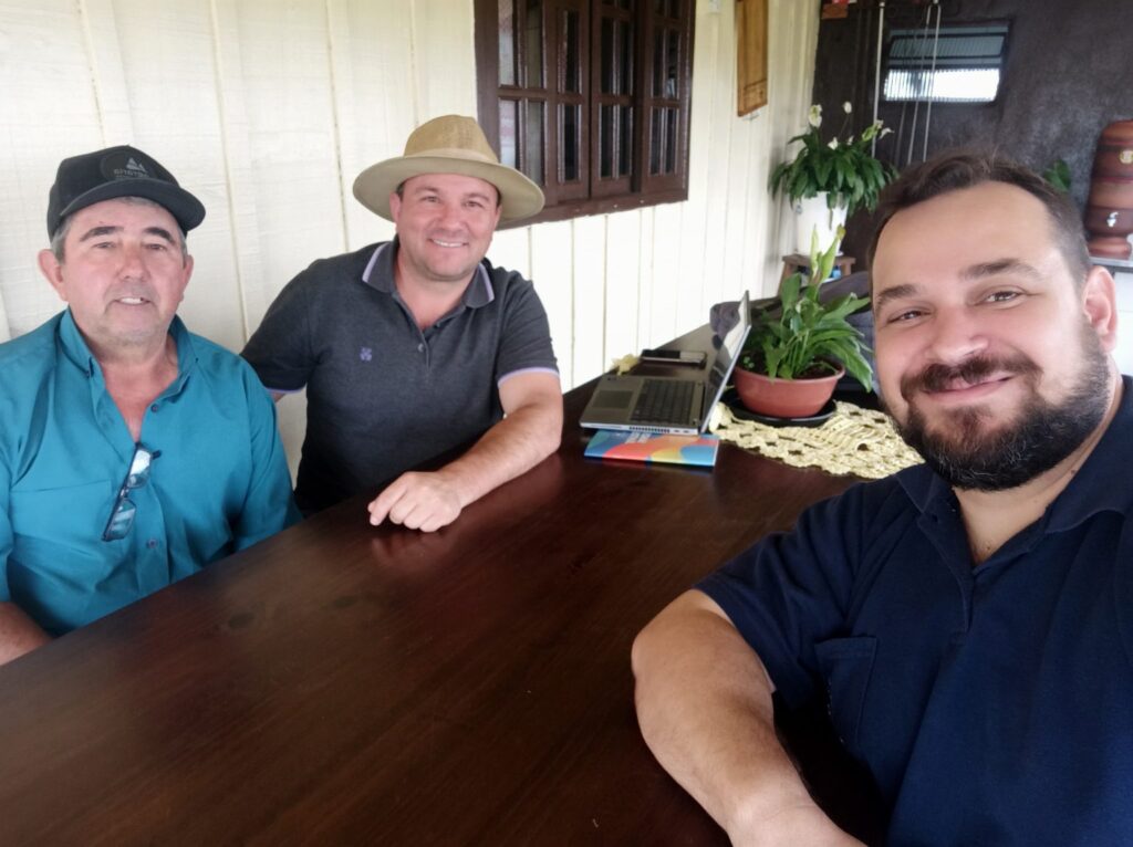 Romildo (colaborador da propriedade) com Dirceu e Pedro Ribas