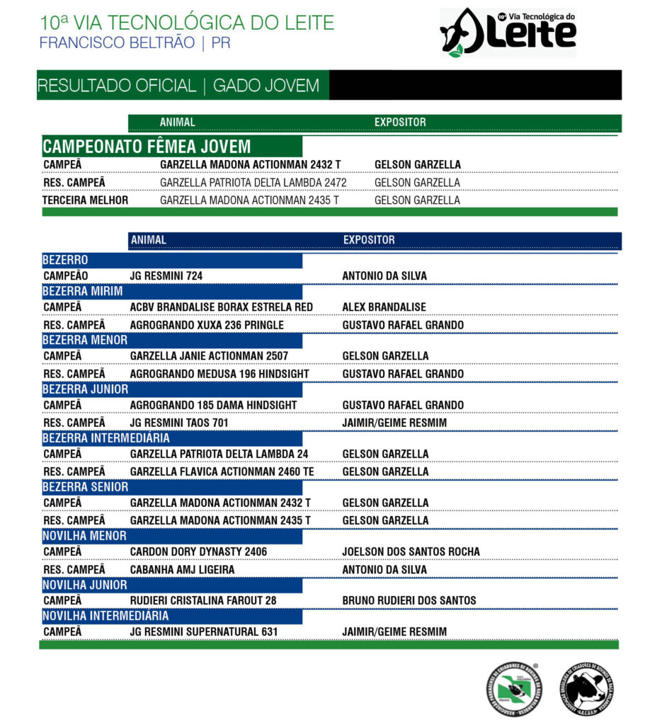 A APCBRH, por meio da sua Diretoria e dos Conselhos Fiscal e Técnico, parabeniza todos os criadores, expositores e organizadores pela excelência da 10ª Via Tecnológica do Leite, que reafirma o compromisso com o desenvolvimento sustentável da pecuária leiteira no Brasil.