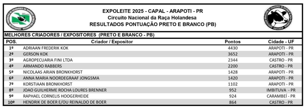 Resultado completo Holandês Preto e Branco (HPB) – [Clique aqui]