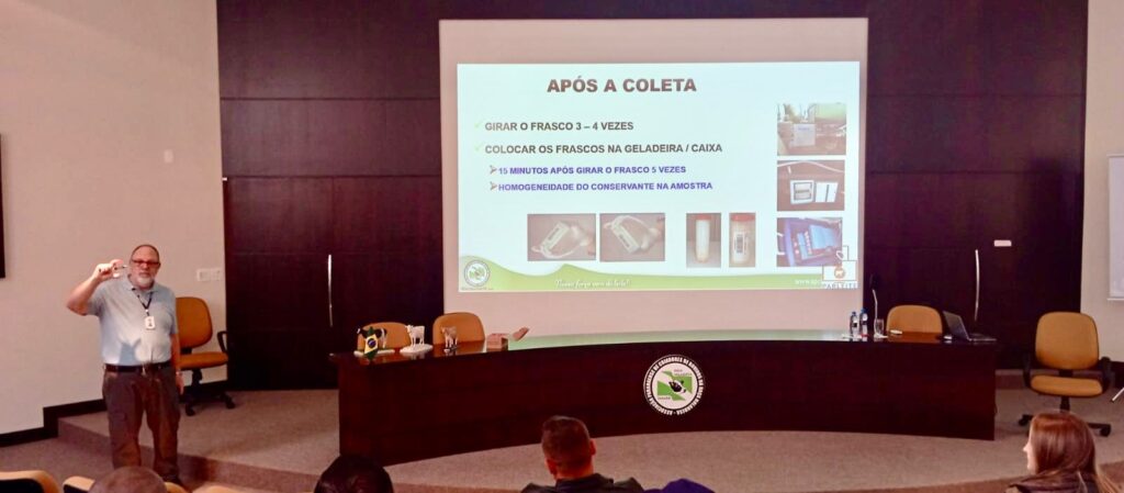 Ao todo, 25 participantes estiveram presentes, reforçando o compromisso das instituições com a qualificação contínua das equipes técnicas e a padronização de procedimentos. O grupo que participou da formação atua diretamente na gestão e logística do transporte de leite para a indústria, e as respectivas coletas de amostras para envio ao Laboratório ou para o controle da indústria, sendo um dos elos da cadeia do leite e identificação da qualidade da matéria-prima das indústrias lácteas.
